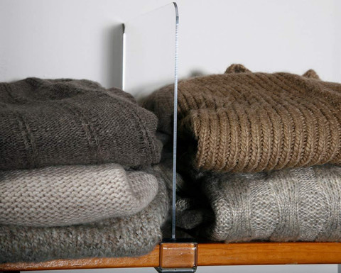 The clos-ette too… Acrylic Shelf Divider makes your dream closet a do-it-yourself, easy project. These dividers will help to organize your shelves in seconds.