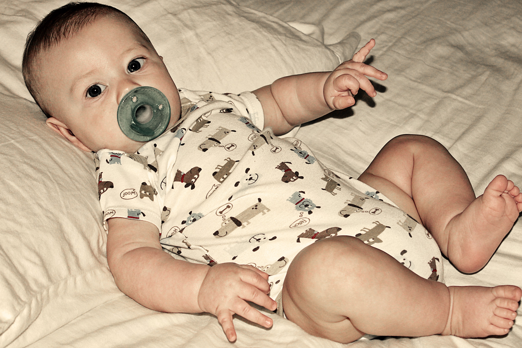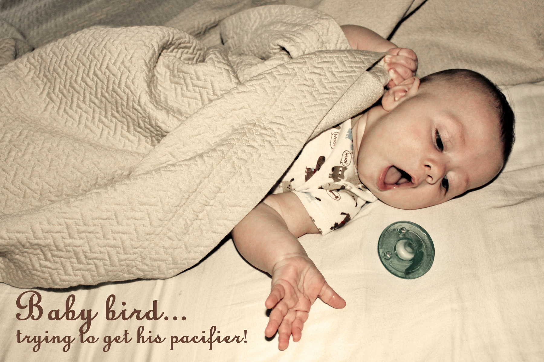 Here is an outake of the morning…a grandmother having a little fun! If the pacifier is put just alittle out of reach,the bird action goes into play! How adorable is this?