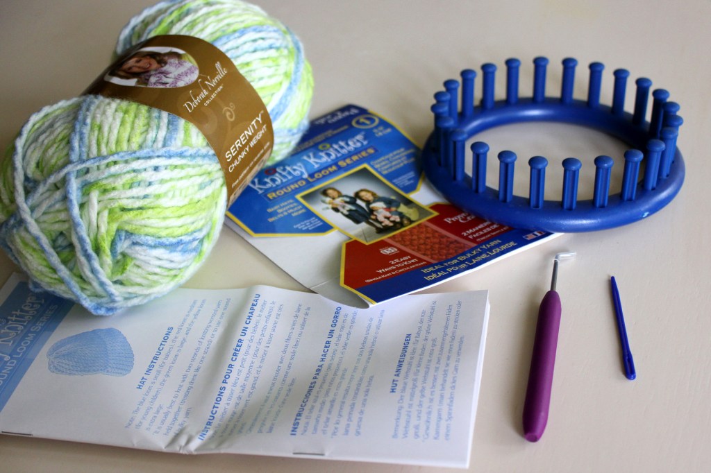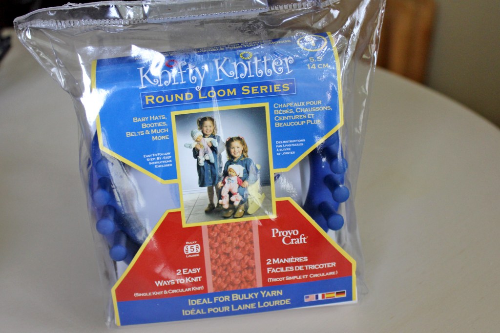 I have to shout out a BIG thank you to my sister-in-law Tami! Last weekend, she brought her knitting loom to our family get together and taught me how to knit on the Knifty Knitter! As soon as I watched her do a few cast on’s I was HOOKED! It reminded me of the good ole days when I was younger and had so much fun making pot holders for my relatives. Do you remember doing this when you were a child? It is about the same technique but with a more mature spin on it. I couldn’t wait to go to Joannes Fabric Store and buy my own knitting loom and yarn.