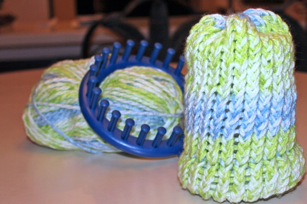 I can’t believe you made that hat on that little loom. I use to knit. Many moons ago.