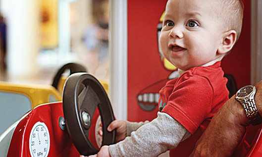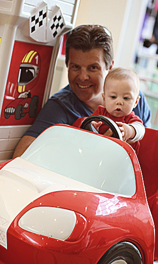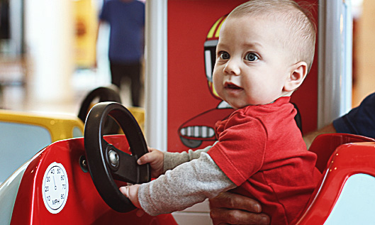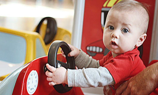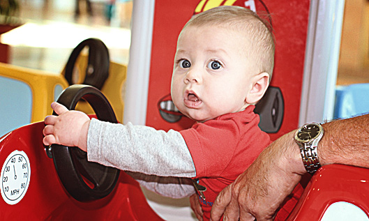 We went to Cincinnati last week to attend Mr. Nolan’s Baby Dedication. Our first day there, we decided to go to the mall and buy him a little suit for this grand event. As we were walking inside the mall, we came across a Car Carousel for children. It was adorable…so I grab my camera and pick up the little man and put him in one of the cars. His eyes lit up and he grabbed the steering wheel immediately!!! We all starting laughing very hard and couldn’t believe how he had this instinct so early…he is only 6 months old!
