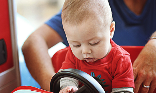 Grandpa…look at this cool steering wheel. I think I like driving. This is how my daddy does it.