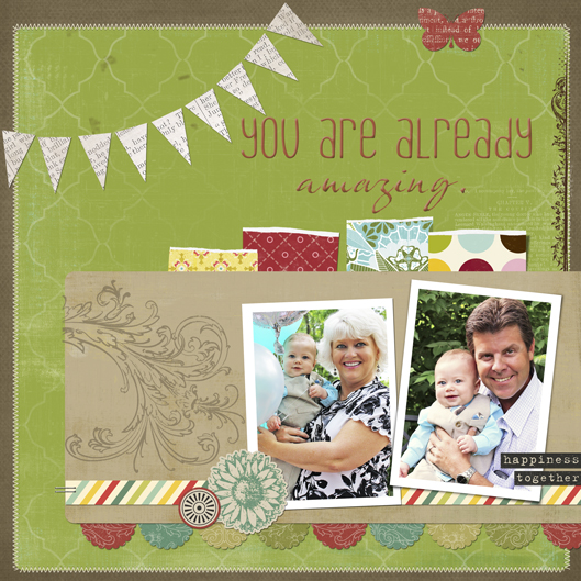 I just finished a mini class with Jessica Sprague called “Top Photoshop 5.” We had 5 days, 5 projects and 1 awesome free class!! She went over some of the most important features using Photoshop for photographers and scrapbookers alike. In this lesson, we went over brushes and all the magical things this fabulous tool can do. The quote you see above is done with a brush set from Kim Klaussen’s Collection.