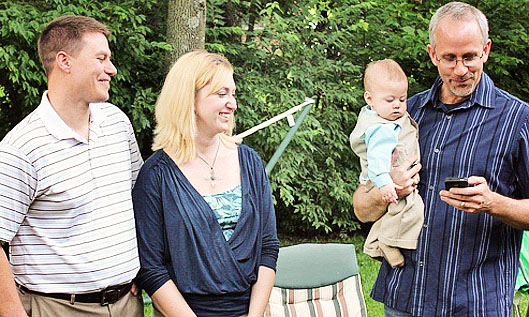 A very excited Pastor holding a very relaxed Nolan…ready to be dedicated to the Lord!