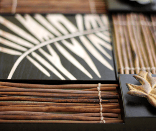 Woven bamboo create great texture on a wall when multiple pieces are grouped together. When you use wood you instantly get a warm effect.