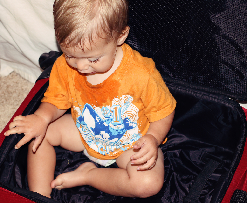 1. So amusing what little ones find to play with and in. And why not a suitcase, right?… it’s exactly his size! Love his long lashes and golden hair and skin… like you, the sun must adore him too 🙂