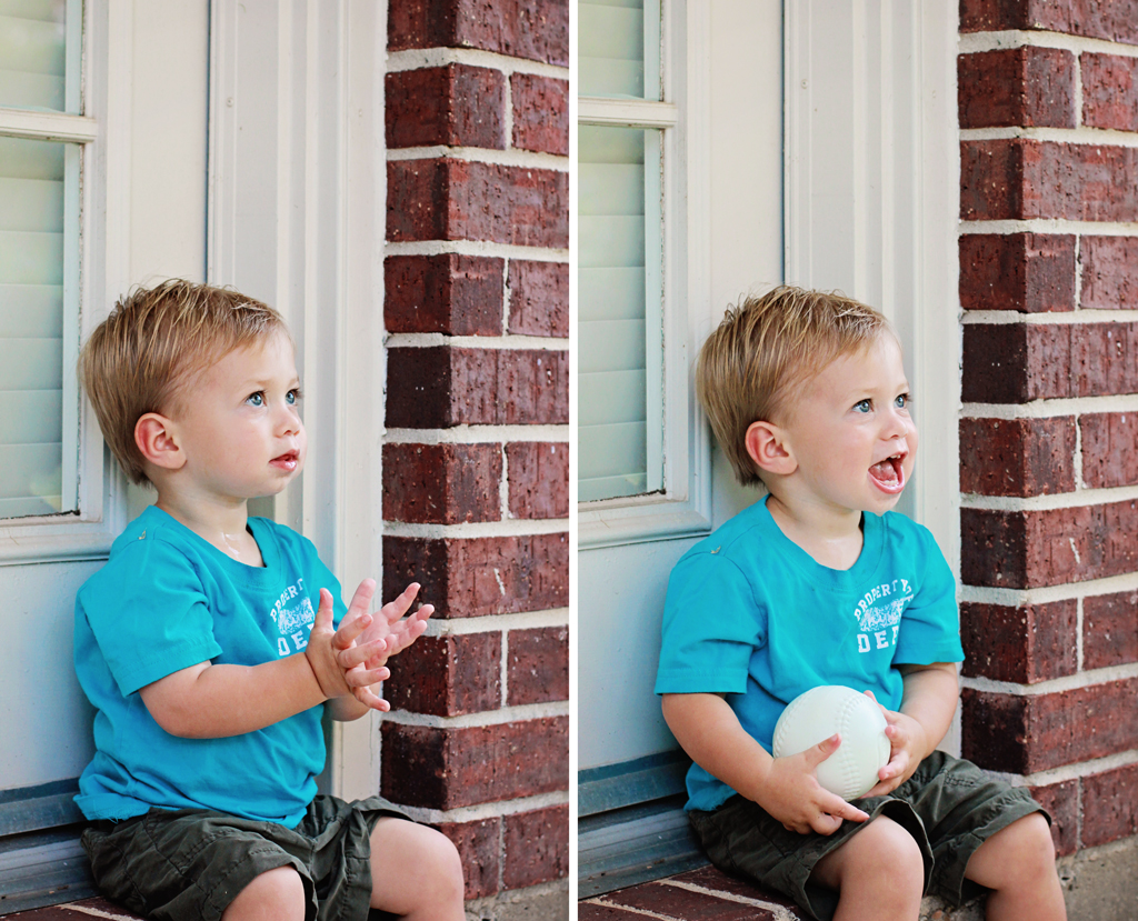 Little Man is doing great in learning the coordination of catching the ball. Of course, every time he caught one…his grandparents went nuts. This in turn brought on big smiles by Mommy and Daddy and as you can see Little Man too!