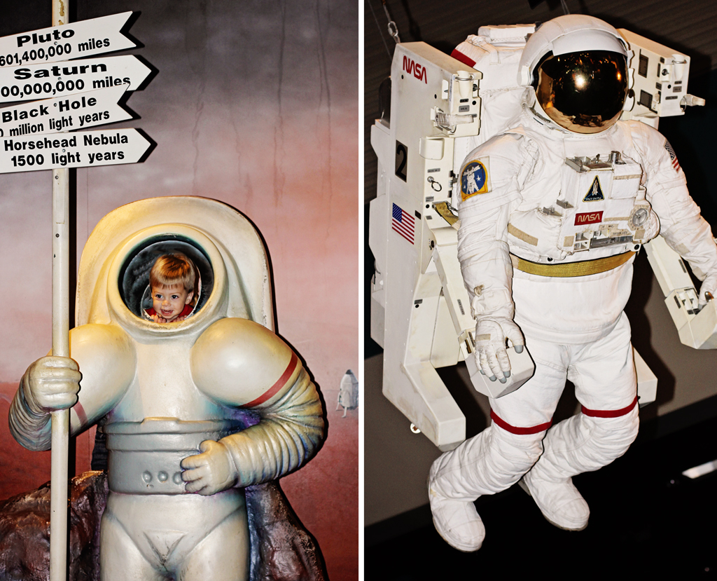 Oh, it didn’t hurt my perspective either to see Little Man’s eyes light up so much with the sites. Here, we see him and Daddy looking at the rocket display.