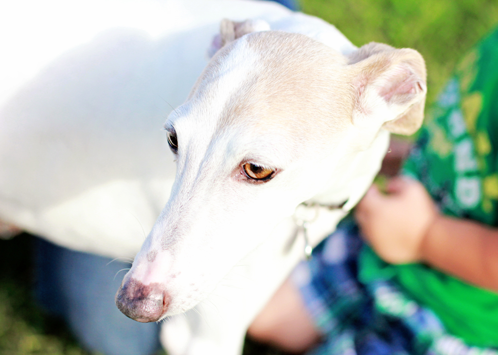 Yes, the dog is a Whippet…so friendly with children.